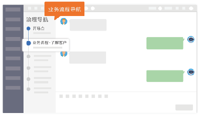 · 設(shè)置標(biāo)準(zhǔn)流程導(dǎo)航,座席可根據(jù)該流程與客戶進(jìn)行交流,系統(tǒng)實(shí)時(shí)標(biāo)記已完成流程,提示當(dāng)前未完成流程,引導(dǎo)業(yè)務(wù)流轉(zhuǎn)。